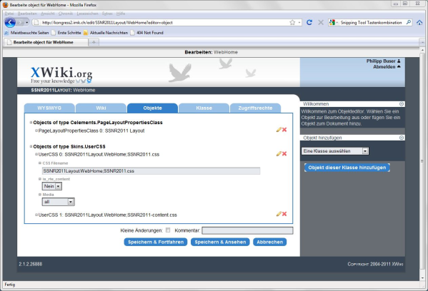 // Bei CSS Filename geben Sie den Pfad zu Ihrem CSS an. Dieser ist wie folgt: "\[Layoutname\].WebHome;\[CSSDateiname\].css" (in unserem Beispiel SSNR2011Layout.WebHome;SSNR2011.css).