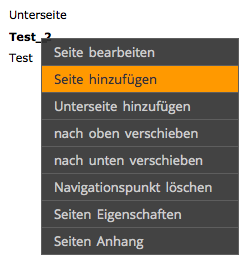 // Auf der Seite in das Menu wechseln, unter welchem die neue Seite erreichbar sein soll