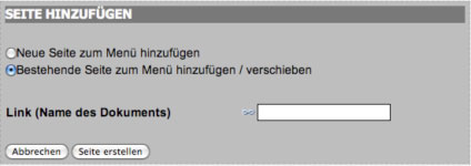 // Bestehende Seite zum Menü hinzufügen / verschieben wählen
