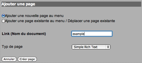 Créer un point de menu (incl. une nouvelle page)
